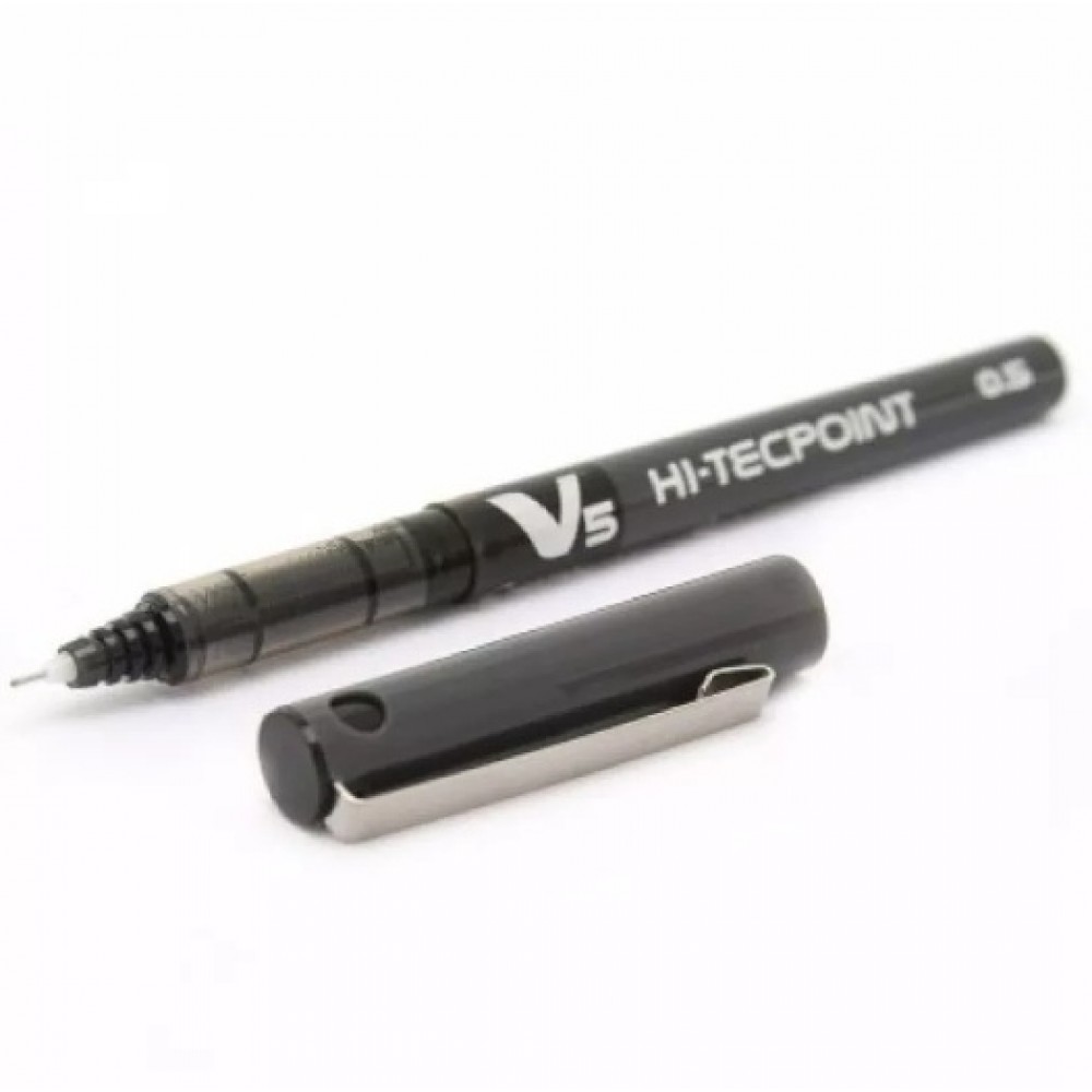 Caneta para aparelho de ECG marca Pilot modelo V5 com ponta em aço 0,5mm e tinta líquida na cor PRETA.